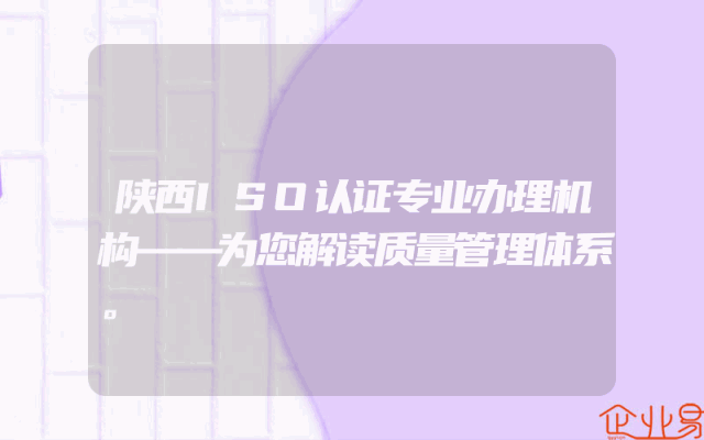 - 陕西ISO认证专业办理机构——为您解读质量管理体系。