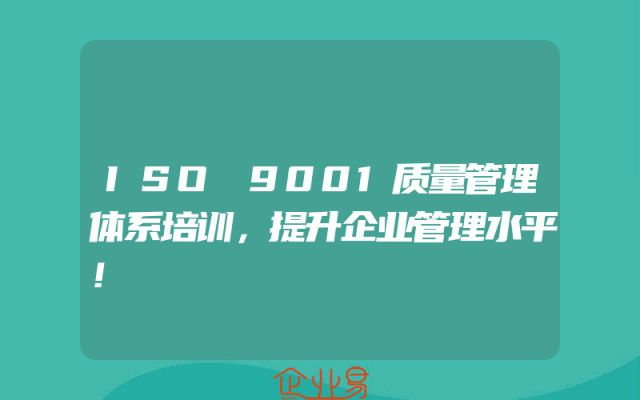 - ISO 9001质量管理体系培训,提升企业管理水平!