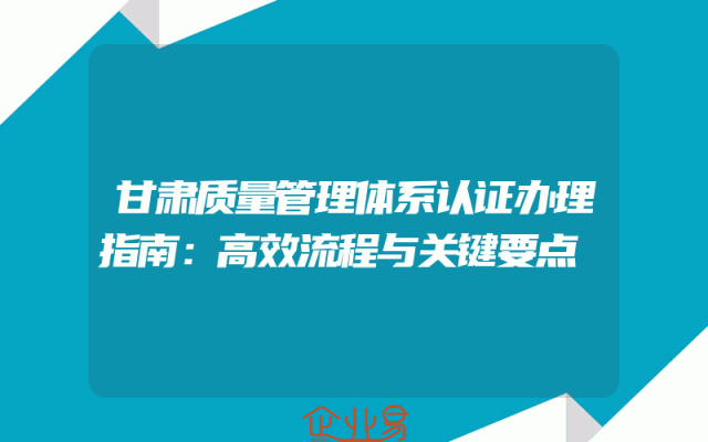 - 甘肃质量管理体系认证办理指南:高效流程与关键要点