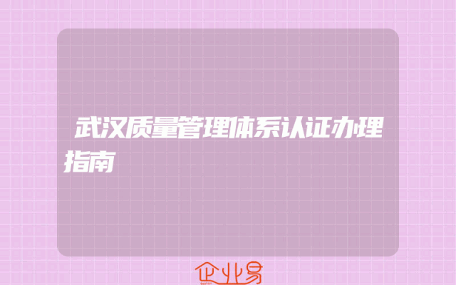 - 武汉质量管理体系认证办理指南