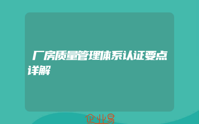 - 厂房质量管理体系认证要点详解