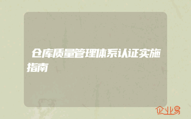 - 仓库质量管理体系认证实施指南