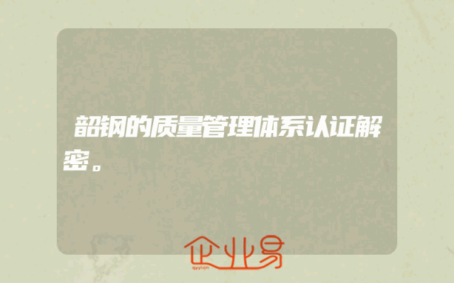 - 韶钢的质量管理体系认证解密。