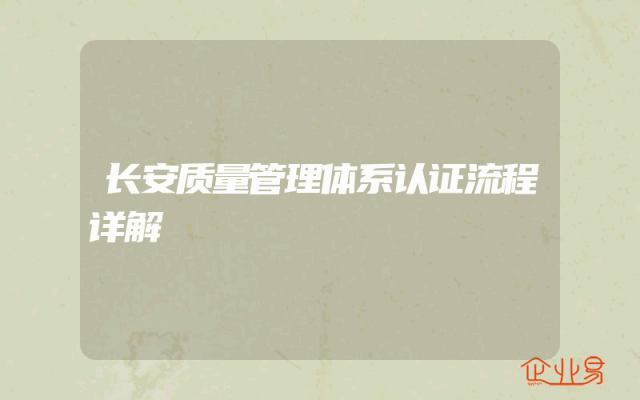 - 长安质量管理体系认证流程详解