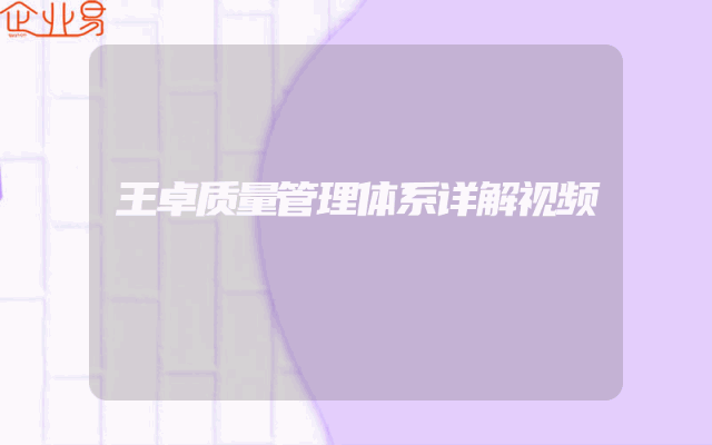 - 王卓质量管理体系详解视频解析文章一、王卓质量管理体系介绍近期发布的王卓质量管理体系详解视频为企业服务行业的从业者提供了一个全面了解质量管理的绝佳机会。通过视频的深度解析,我们可以了解到王卓质量管理体系的核心思想及其在企业运营中的重要性。该体