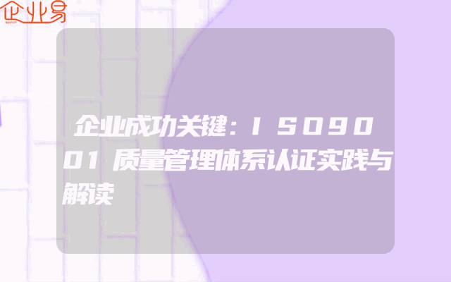 - 企业成功关键:ISO9001质量管理体系认证实践与解读