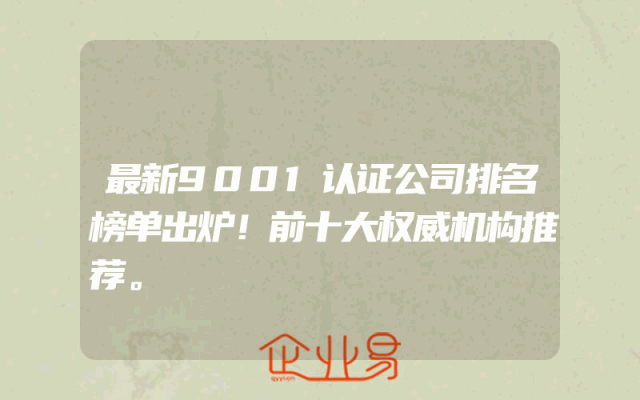 - 最新9001认证公司排名榜单出炉!前十大权威机构推荐。