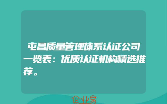 - 屯昌质量管理体系认证公司一览表:优质认证机构精选推荐。