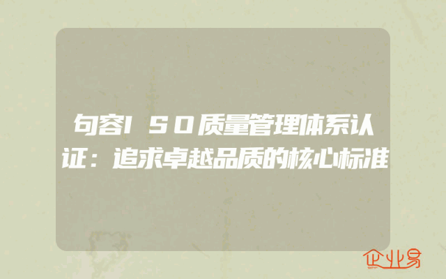 - 句容ISO质量管理体系认证:追求卓越品质的核心标准