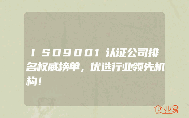 - ISO9001认证公司排名权威榜单,优选行业领先机构!