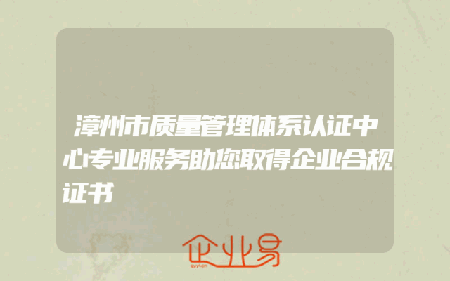 - 漳州市质量管理体系认证中心专业服务助您取得企业合规证书