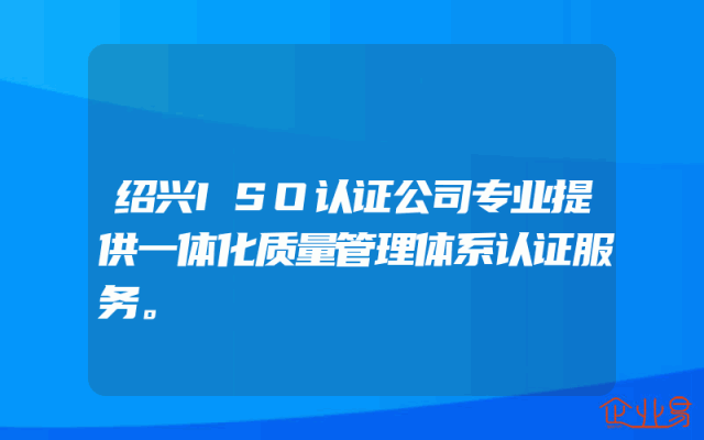 - 绍兴ISO认证公司专业提供一体化质量管理体系认证服务。