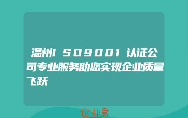 - 温州ISO9001认证公司专业服务助您实现企业质量飞跃