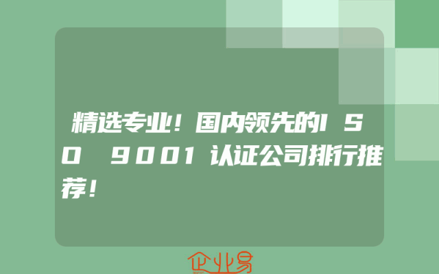 - 精选专业!国内领先的ISO 9001认证公司排行推荐!