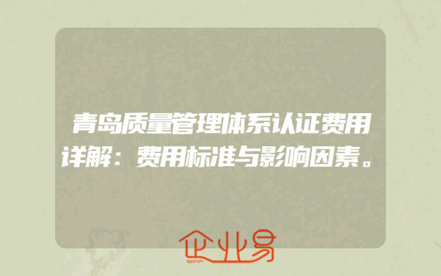 - 青岛质量管理体系认证费用详解:费用标准与影响因素。