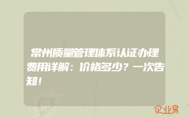 - 常州质量管理体系认证办理费用详解:价格多少?一次告知!