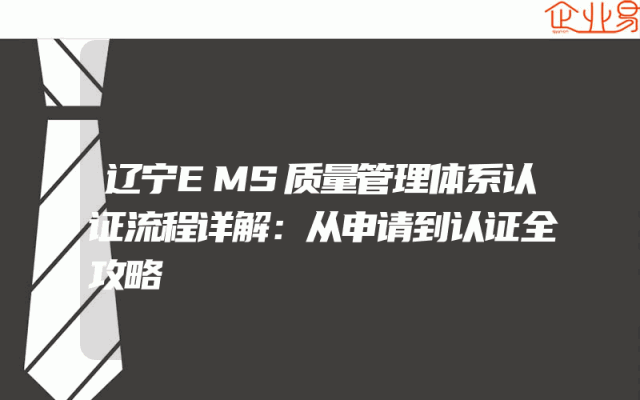 - 辽宁EMS质量管理体系认证流程详解:从申请到认证全攻略