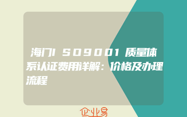 - 海门ISO9001质量体系认证费用详解:价格及办理流程