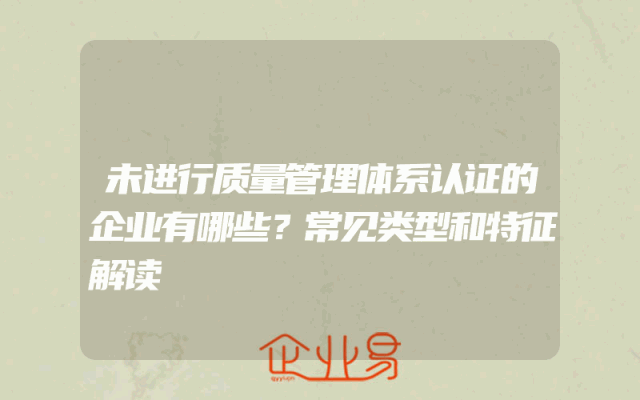 - 未进行质量管理体系认证的企业有哪些?常见类型和特征解读
