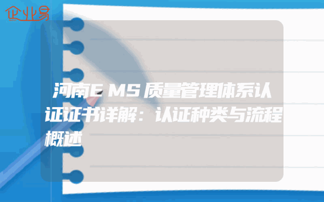 - 河南EMS质量管理体系认证证书详解:认证种类与流程概述