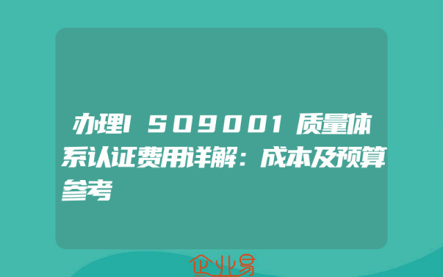 - 办理ISO9001质量体系认证费用详解:成本及预算参考