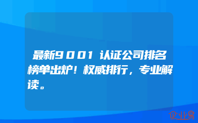 - 最新9001认证公司排名榜单出炉!权威排行,专业解读。