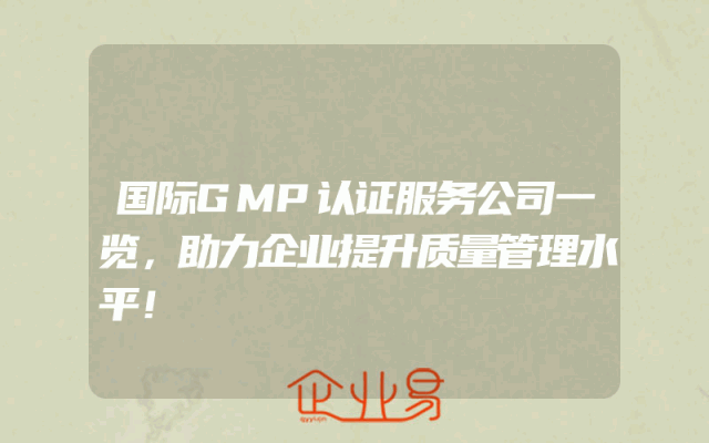 - 国际GMP认证服务公司一览,助力企业提升质量管理水平!