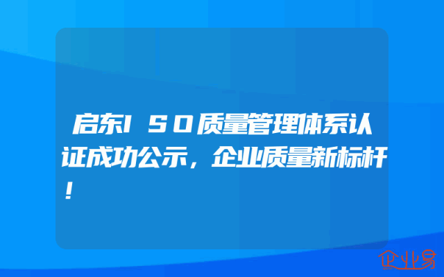 - 启东ISO质量管理体系认证成功公示,企业质量新标杆!