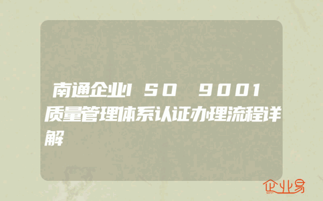 - 南通企业ISO 9001质量管理体系认证办理流程详解