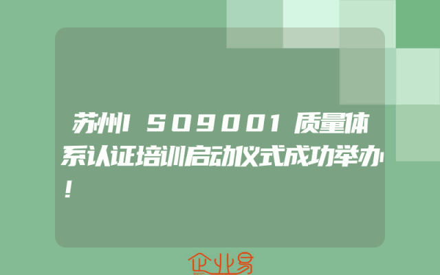 - 苏州ISO9001质量体系认证培训启动仪式成功举办!