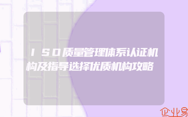 - ISO质量管理体系认证机构及指导选择优质机构攻略