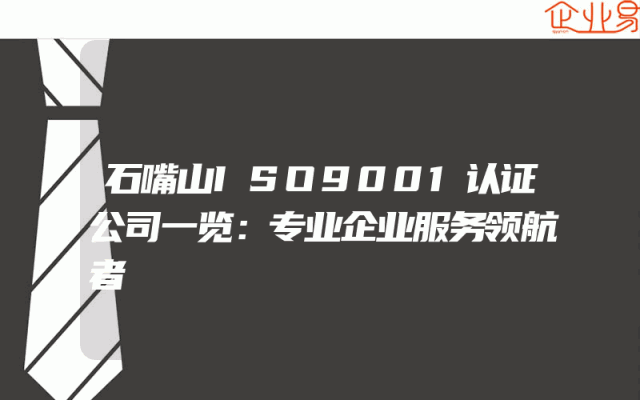 - 石嘴山ISO9001认证公司一览:专业企业服务领航者