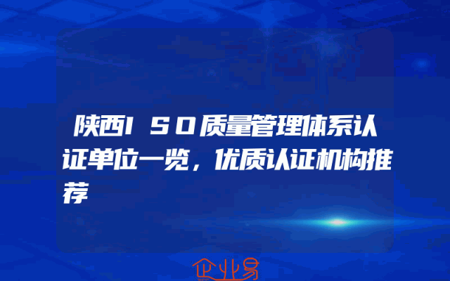 - 陕西ISO质量管理体系认证单位一览,优质认证机构推荐