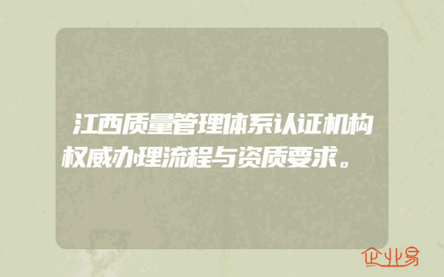 - 江西质量管理体系认证机构权威办理流程与资质要求。