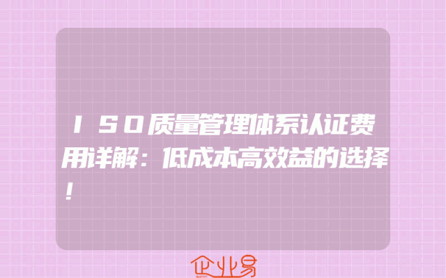 - ISO质量管理体系认证费用详解:低成本高效益的选择!