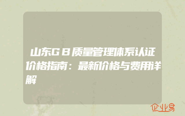 - 山东GB质量管理体系认证价格指南:最新价格与费用详解