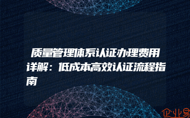 - 质量管理体系认证办理费用详解:低成本高效认证流程指南