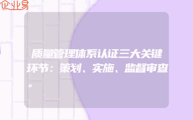 - 质量管理体系认证三大关键环节:策划、实施、监督审查。