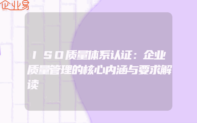 - ISO质量体系认证:企业质量管理的核心内涵与要求解读