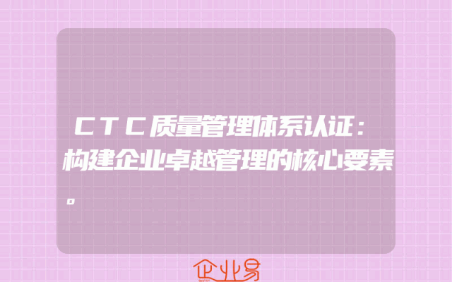 - CTC质量管理体系认证:构建企业卓越管理的核心要素。