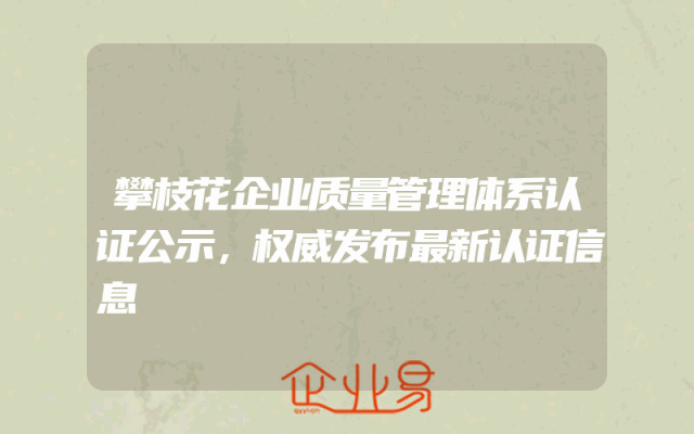 - 攀枝花企业质量管理体系认证公示,权威发布最新认证信息