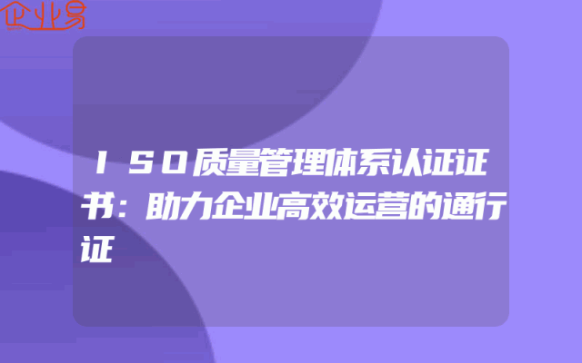 - ISO质量管理体系认证:提升企业管理水平的关键举措。
