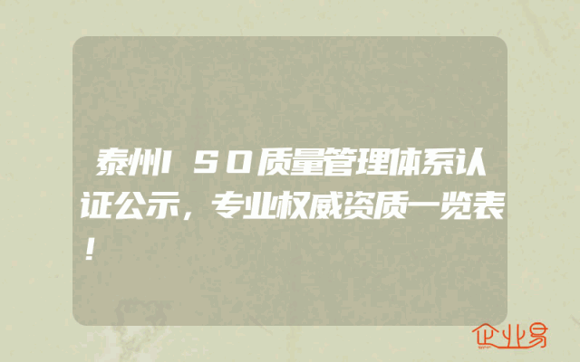 - 泰州ISO质量管理体系认证公示,专业权威资质一览表!