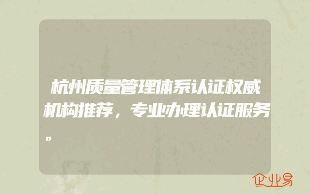 - 杭州质量管理体系认证权威机构推荐,专业办理认证服务。