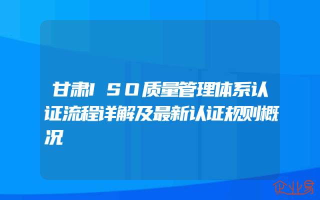 - 甘肃ISO质量管理体系认证流程详解及最新认证规则概况