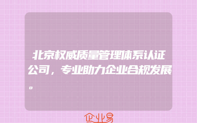 - 北京权威质量管理体系认证公司,专业助力企业合规发展。
