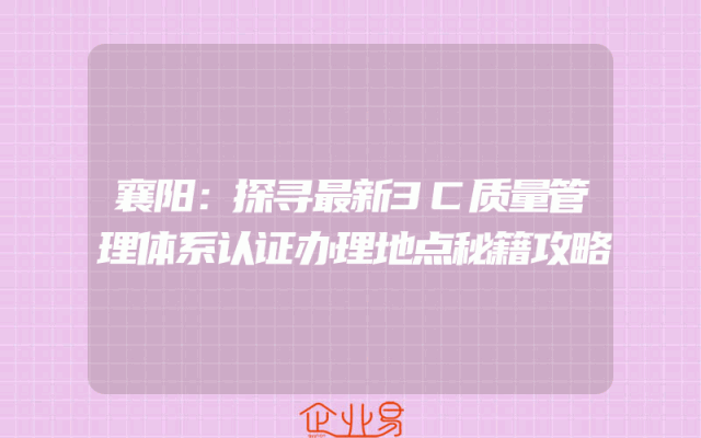 - 襄阳:探寻最新3C质量管理体系认证办理地点秘籍攻略