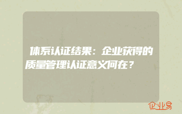 - 体系认证结果:企业获得的质量管理认证意义何在?