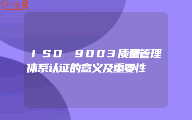 - ISO 9003质量管理体系认证的意义及重要性