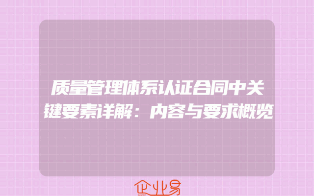 - 质量管理体系认证合同中关键要素详解:内容与要求概览